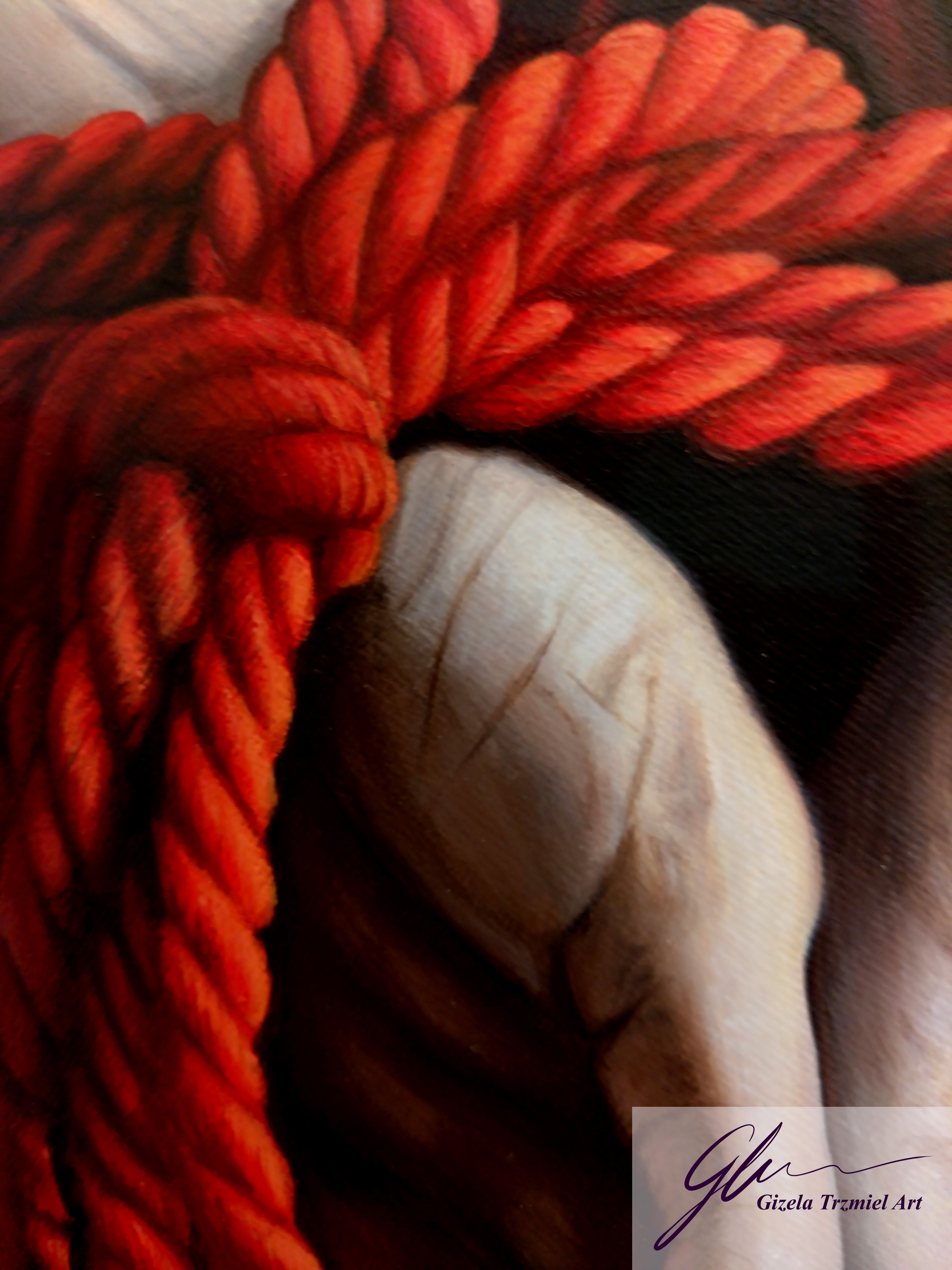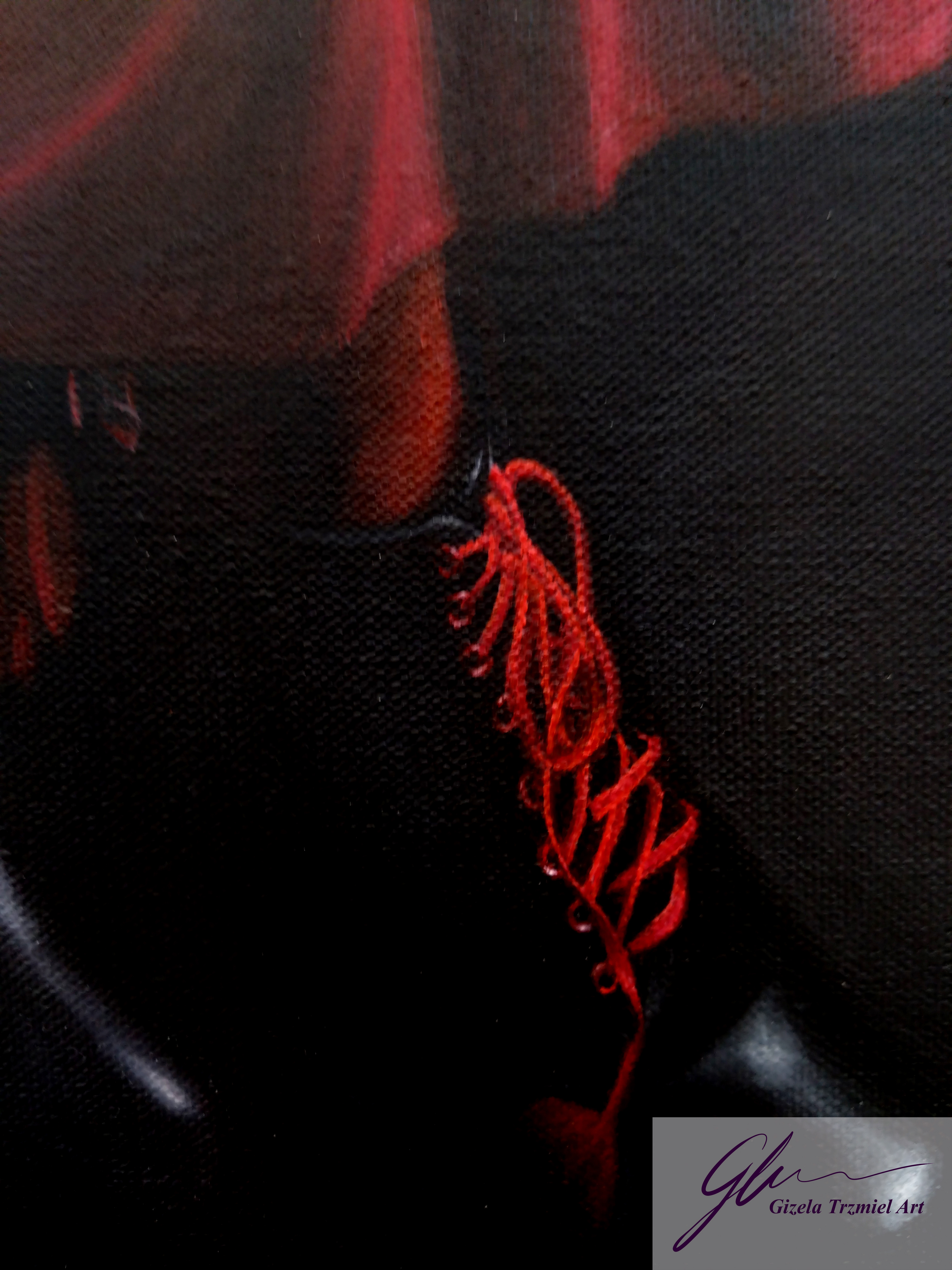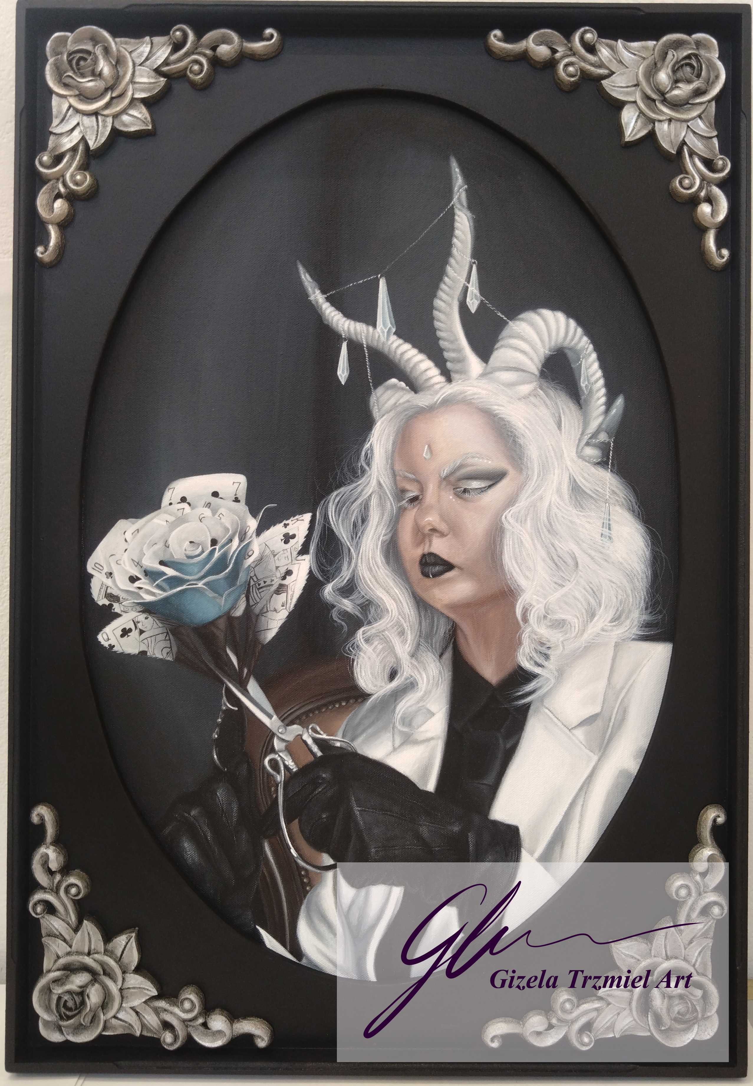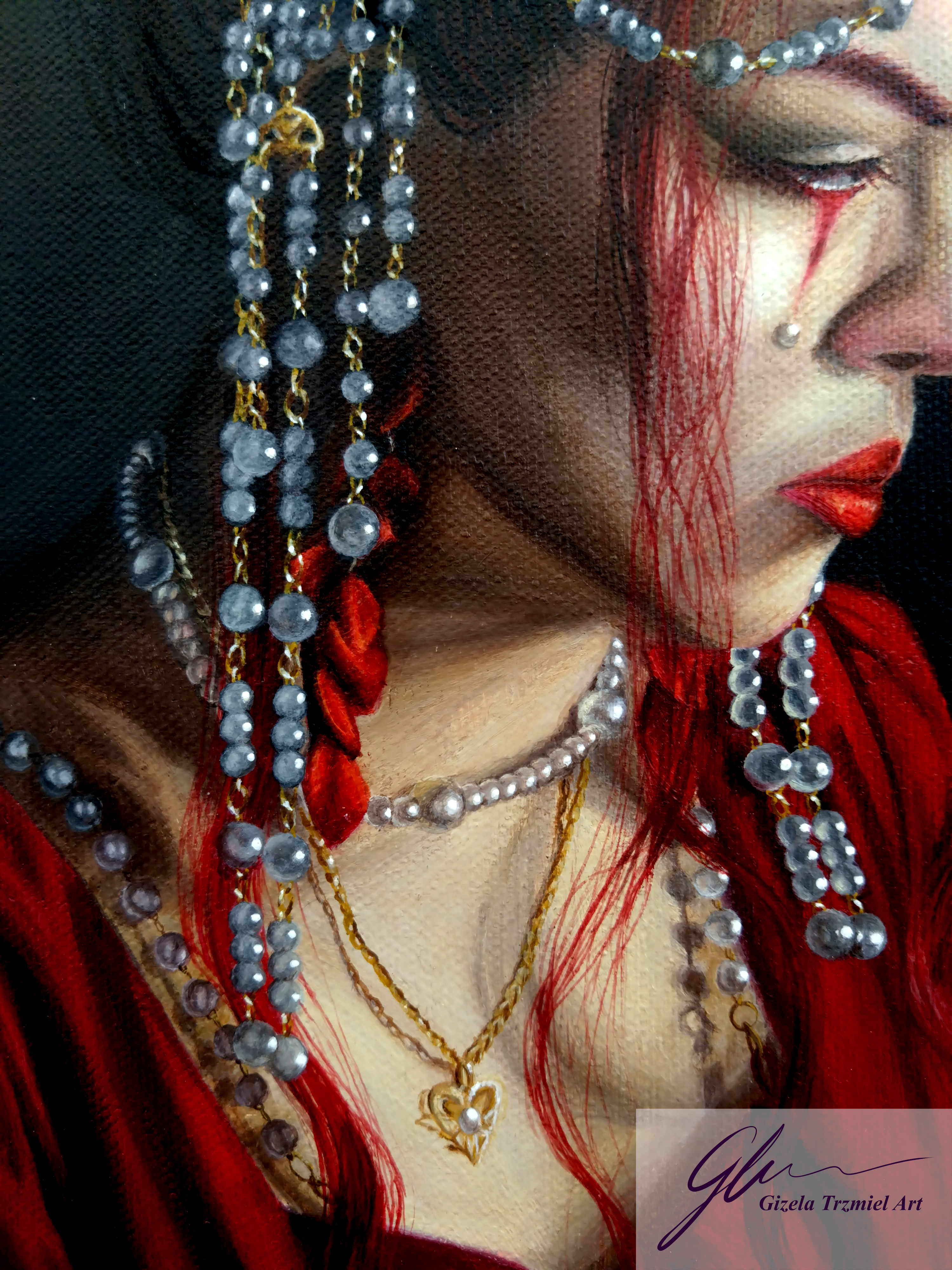 This series of works was completed in the artist’s final year of university. In these self-portraits, the artist represents herself as two separate alter egos. These personas are based on the Red and White Queens from Lewis Carroll’s ‘Through the Looking-Glass: And What Alice Found There’. They represent duality or inner conflict – conflicts of love and hate, of spiritual and material, of needs and wants, which we all experience. This investigation of the self is an exorcism through the reopening and healing of old wounds.